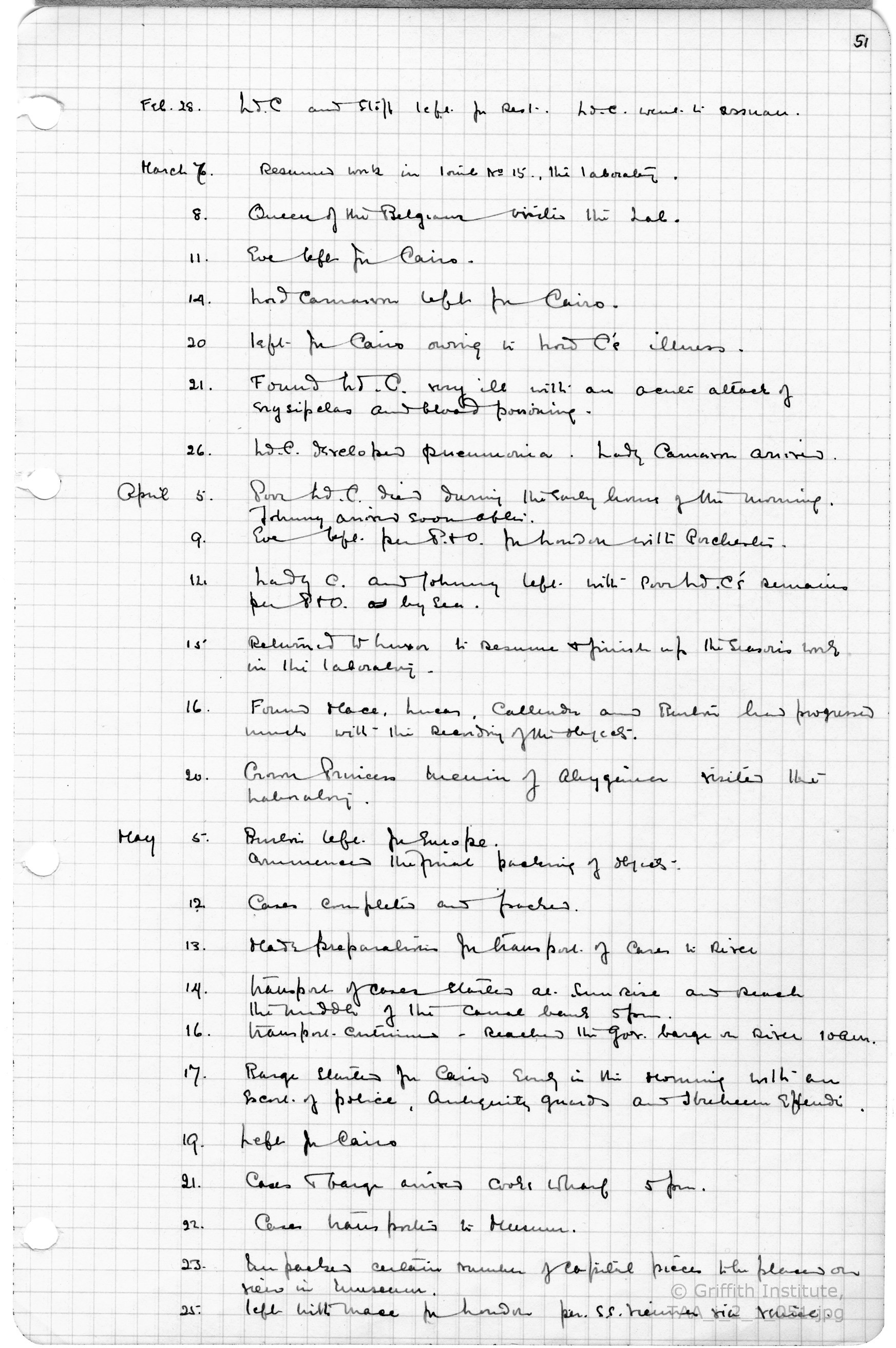 Ld. C. developed pneumonia. Lady Carnarvon arrived.