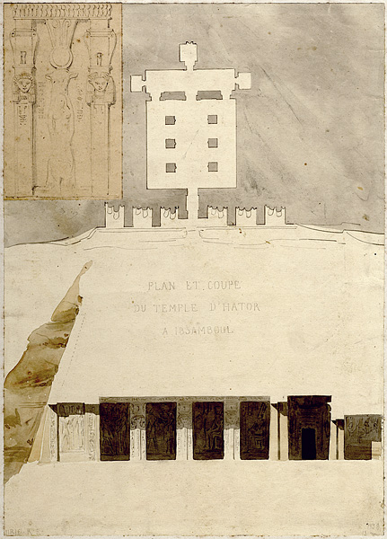 PLAN ET COUPE DU TEMPLE D'HATOR A IBSAMBOUL