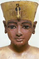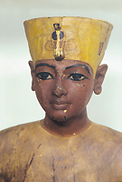 Head of the 2nd (middle) anthropoid coffin, Tutankhamun wearing