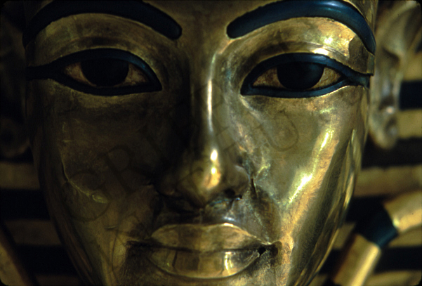Detail of head of Tutankhamun from the 2nd (middle) anthropoid coffin with nemes headdress bearing