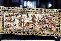 A footstool decorated with the "nine bows" portrayed here as nine bound Asiatic and Nubian captives. (Carter number 378)