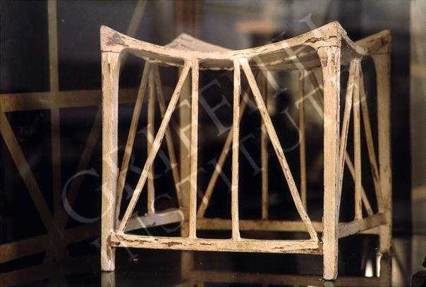 be folded. The objects placed upon the stool are three imitation claws which were situated at each corner of the seat. (Carter number 83)