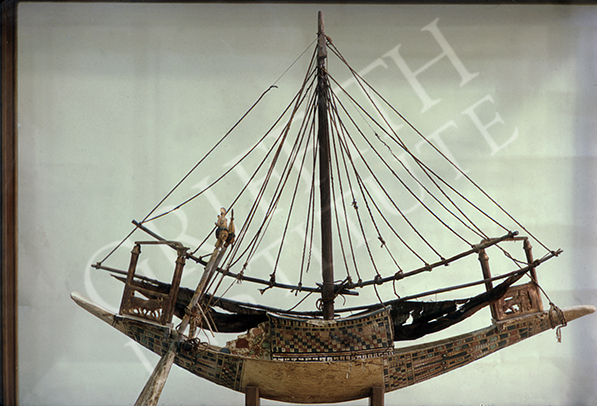 A model boat with rigging and folded sail. (Carter number 336)