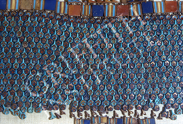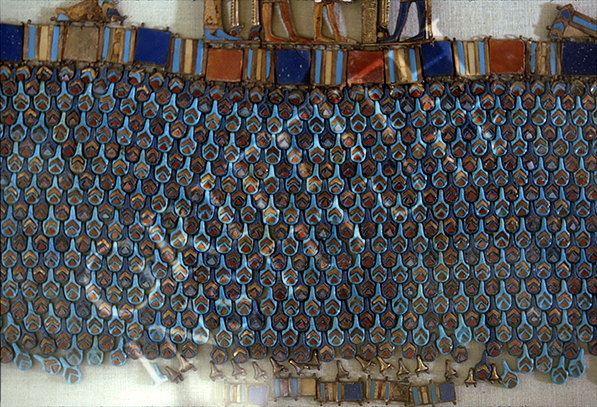 Elaborate suite of jewellery comprising a collar, two pectorals, braces, and corslet with imitation feather ornamentation. Detail, part of feather-decoration from front of corslet. (Carter number 54k)