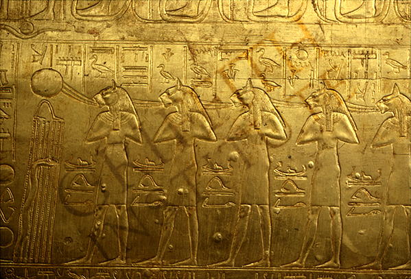 shrines. Detail from the north exterior side of the second shrine, five lion-headed deities. (Carter number 237)