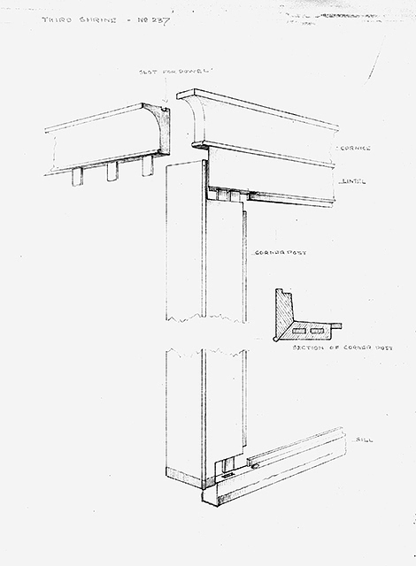 Although this shrine is of larger dimensions than the second shrine of this series, its method of construction and structural form is the same.