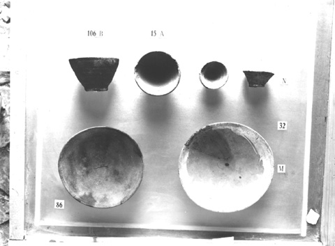 Six small pottery saucers