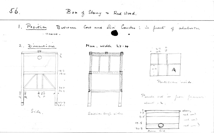 Handlist description: Box of ebony and red wood Card/Transcription No.: 056-1 |