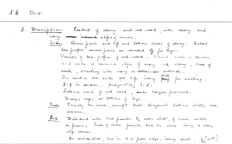 Panels of box proper of red-wood. Round each a border 2.5 wide of veneered slips of ivory