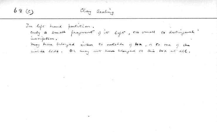 Handlist description: Clay sealing Card/Transcription No.: 068c |