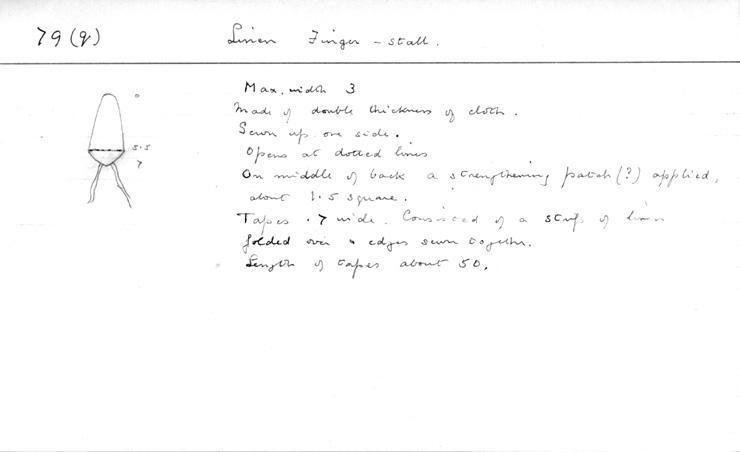 Handlist description: Linen finger-stall Card/Transcription No.: 079q |