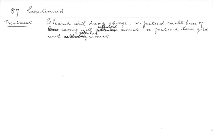Handlist description: Carved cedar-wood chair Card/Transcription No.: 087-4 |