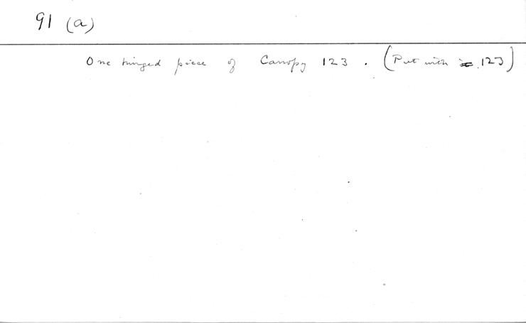 Handlist description: One hinged piece of canopy of 123 Card/Transcription No.: 091a |