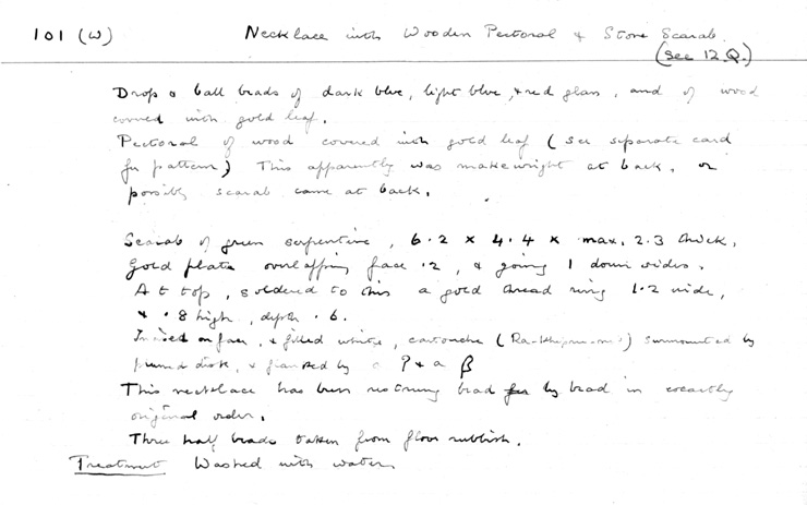 101 (w) Necklace with Wooden Pectoral and Stone Scarab. (See 12.Q.)