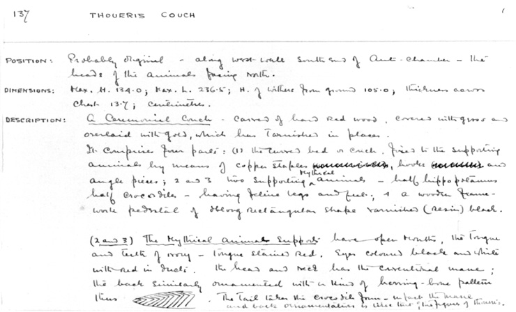 It comprises four parts: (1) the curved bed or couch, fixed to the supporting animals by means