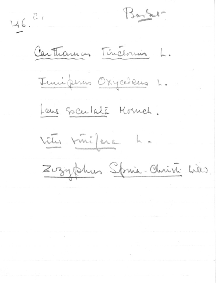 146(?) Basket Carthamus tinctorius L. Juniperus oxycedrus L. Lens Esculata Moruch. Vitis vinifera L. Zizyphus Spina-Christi wild