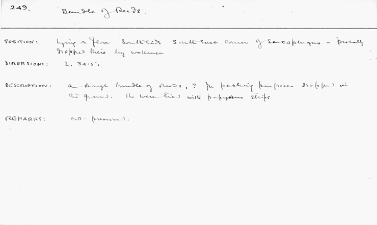 Handlist description: Bundle of reeds Card/Transcription No.: 249 |
