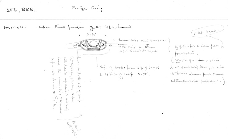 Handlist description: Finger ring Card/Transcription No.: 256bbb |