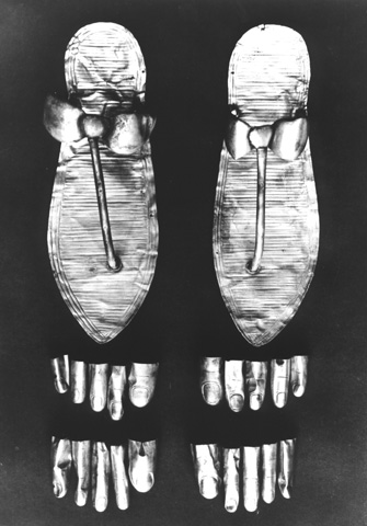 Handlist description: Gold sandals and gold toe and finger stalls Burton photograph: p1478 |