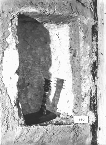 Handlist description: Niche containing wooden djad emblem Burton photograph: p0884c |