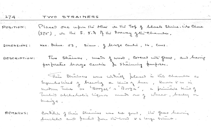 These strainers were evidently placed in this chamber as symbolical of brewing a kind of