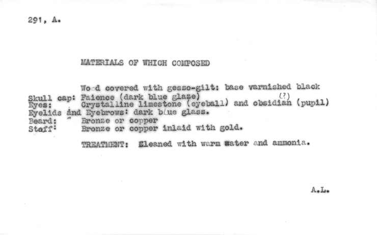 Handlist description: Figure of the god Ptah Card/Transcription No.: 291a-2 |