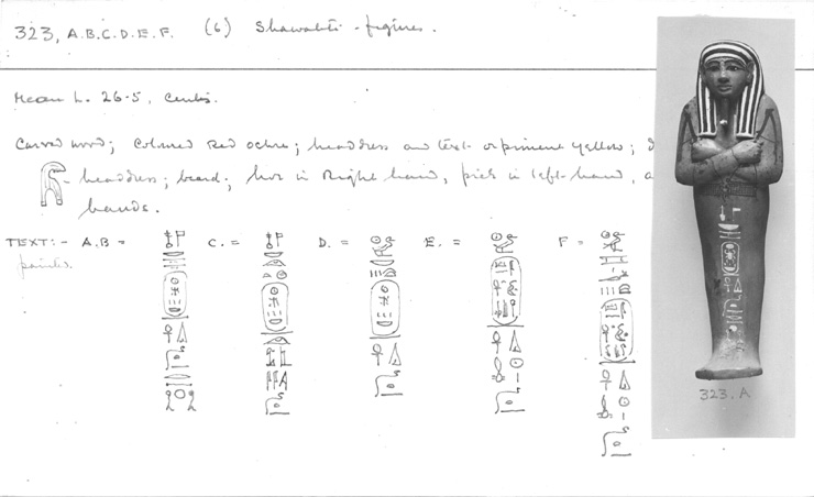 Handlist description: Shawabti figure Card/Transcription No.: 323af |