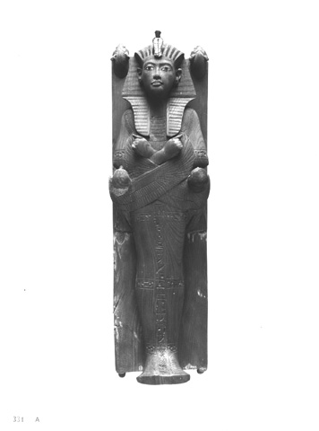 Handlist description: Osiride recumbent figure of the King, lying on a funeral bier Burton photograph: p1051 |