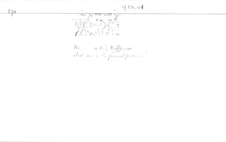 574 <> cf. 620,101 ? "The ... of king Nebhprwrc which are in the funeral procession."