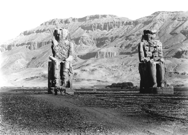 | Beato, A. (probably) [Gr. Inst. 4297 in an album where photographs appear to be exclusively by A. Beato.], The Theban west bank, the Memnon Colossi (c.1890 [Estimated date.]) [Enlarged] |