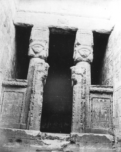 Tne temple of Hathor. The façade and entrance to the chapel to the west of the sanctuary. Zangaki, G., c.1880 [Estimated date.] (gi06041.jpg) |