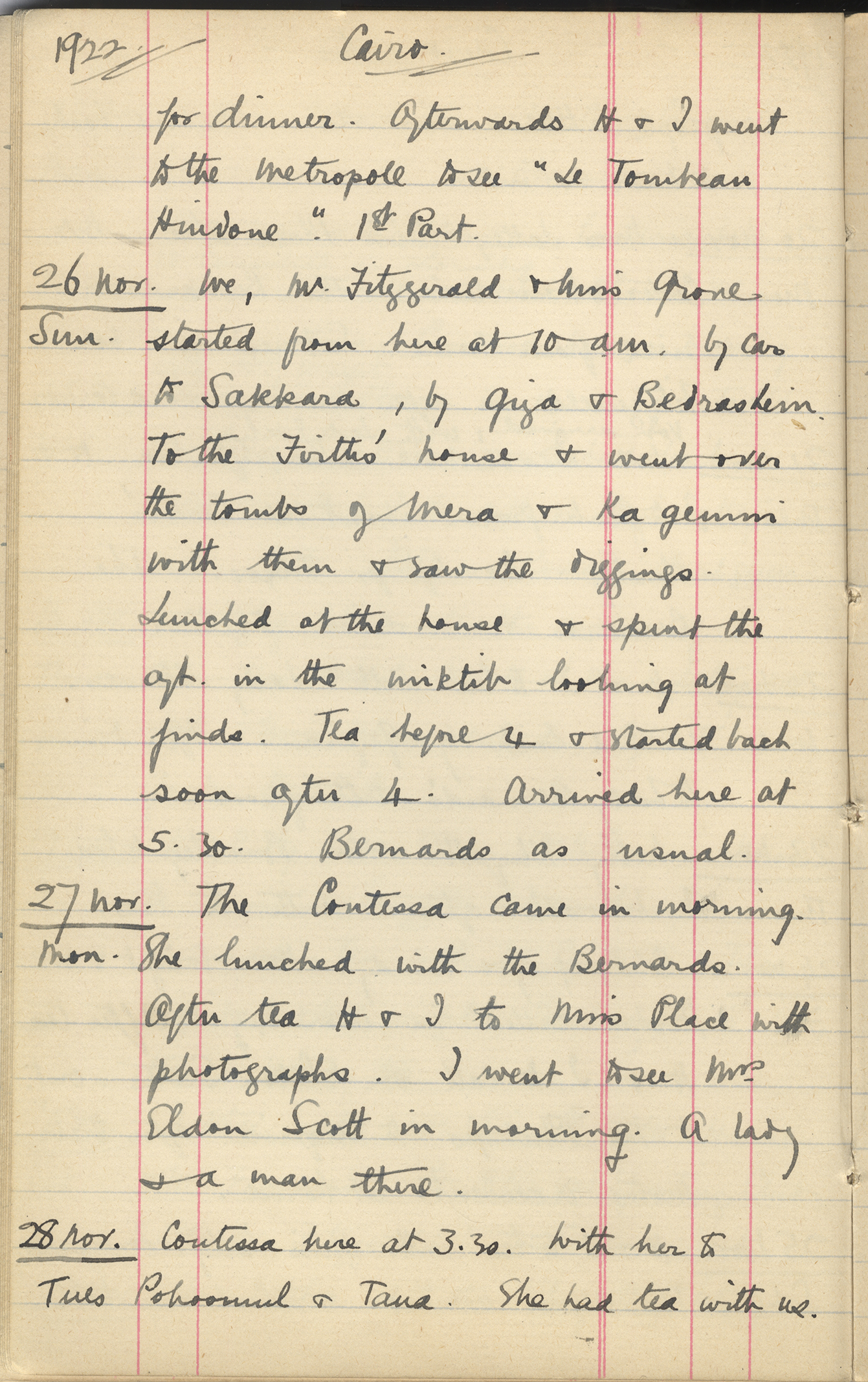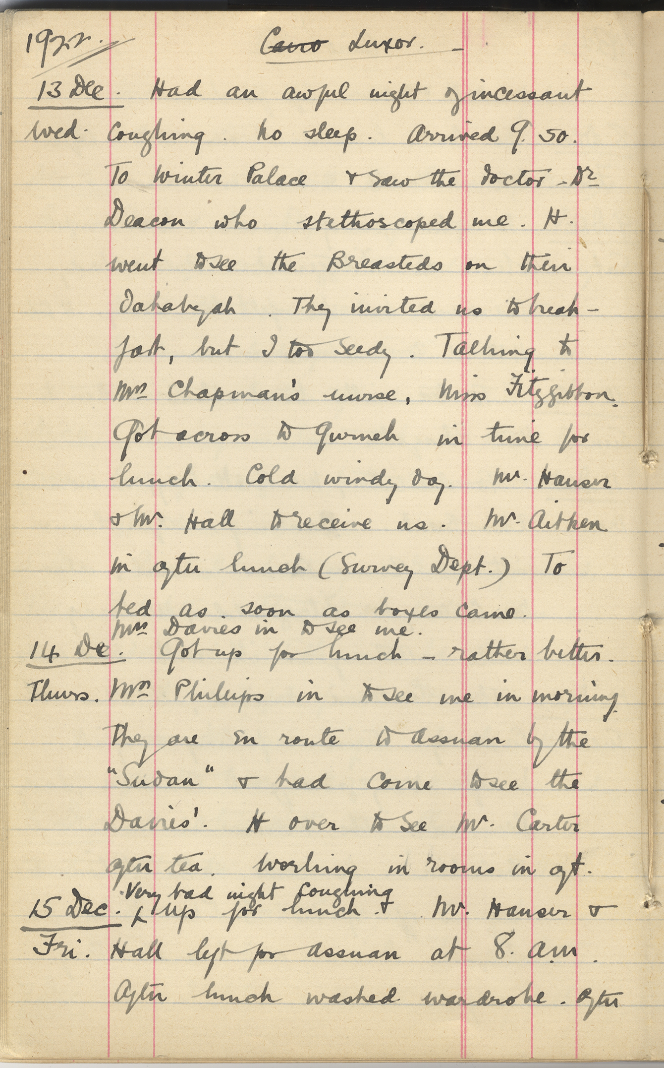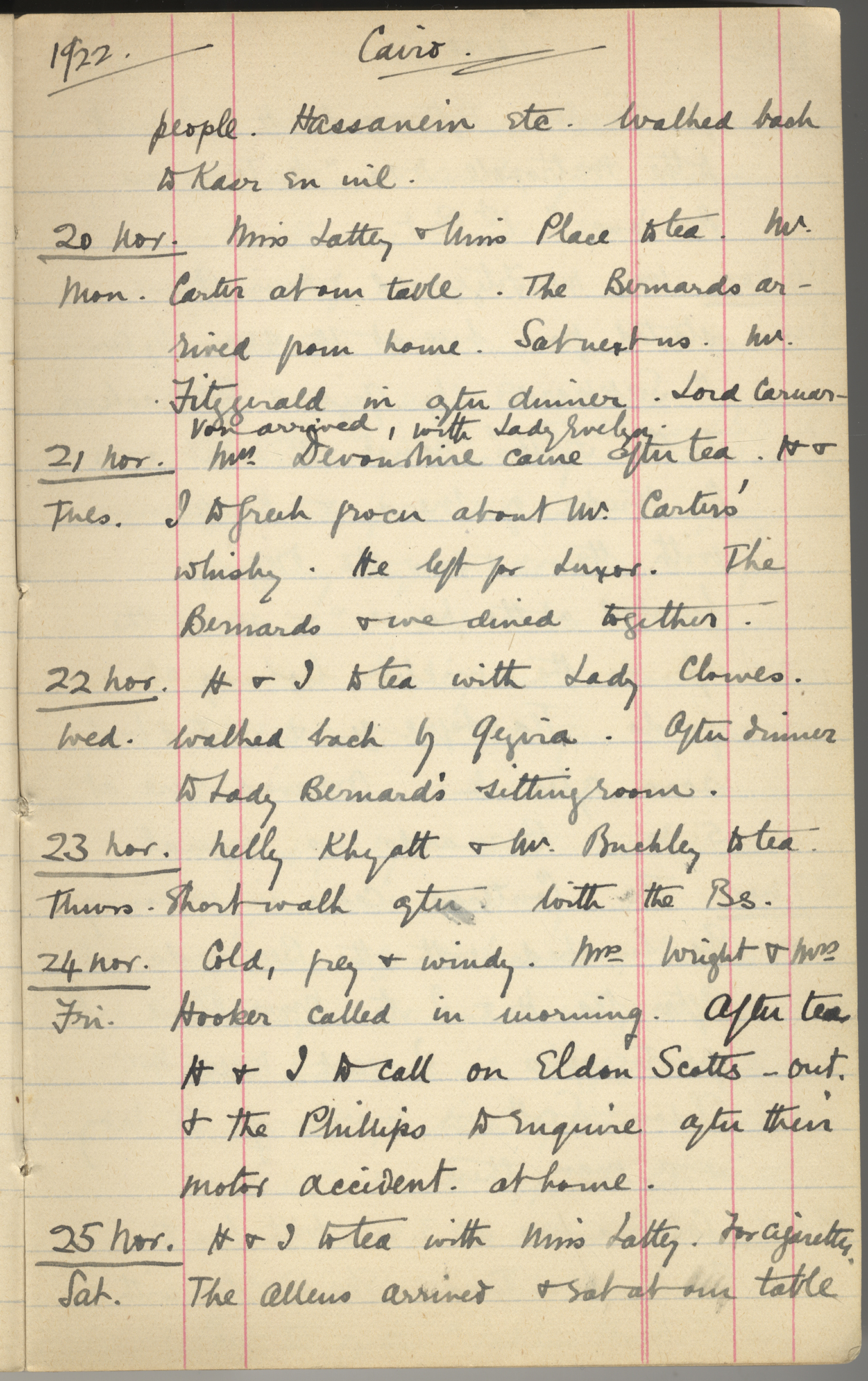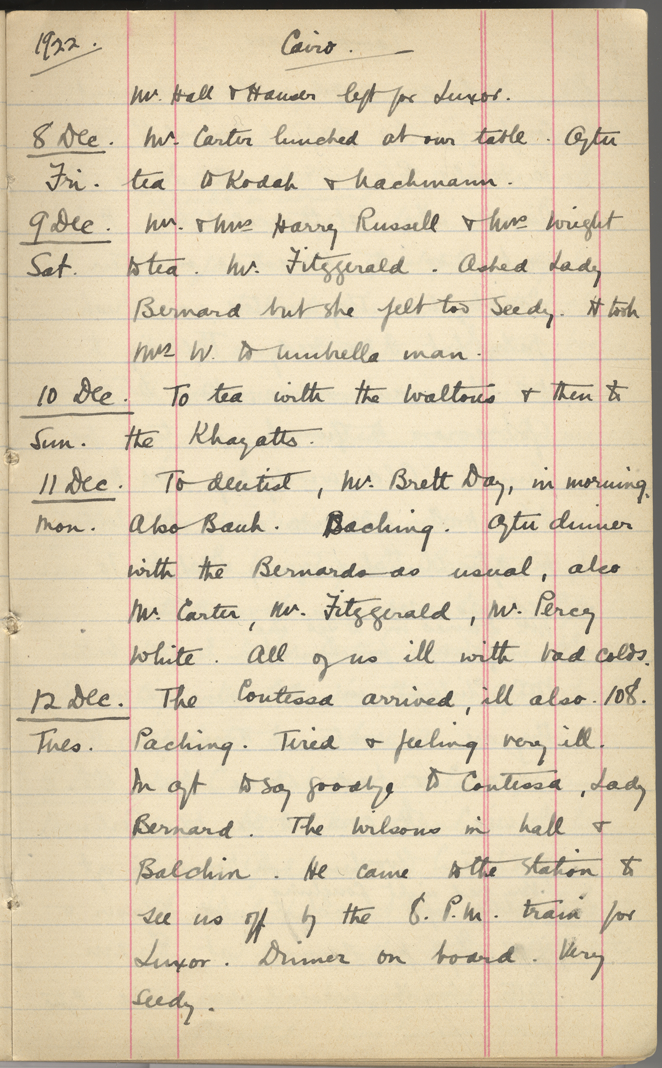 Hall came back from Assuan. Mrs