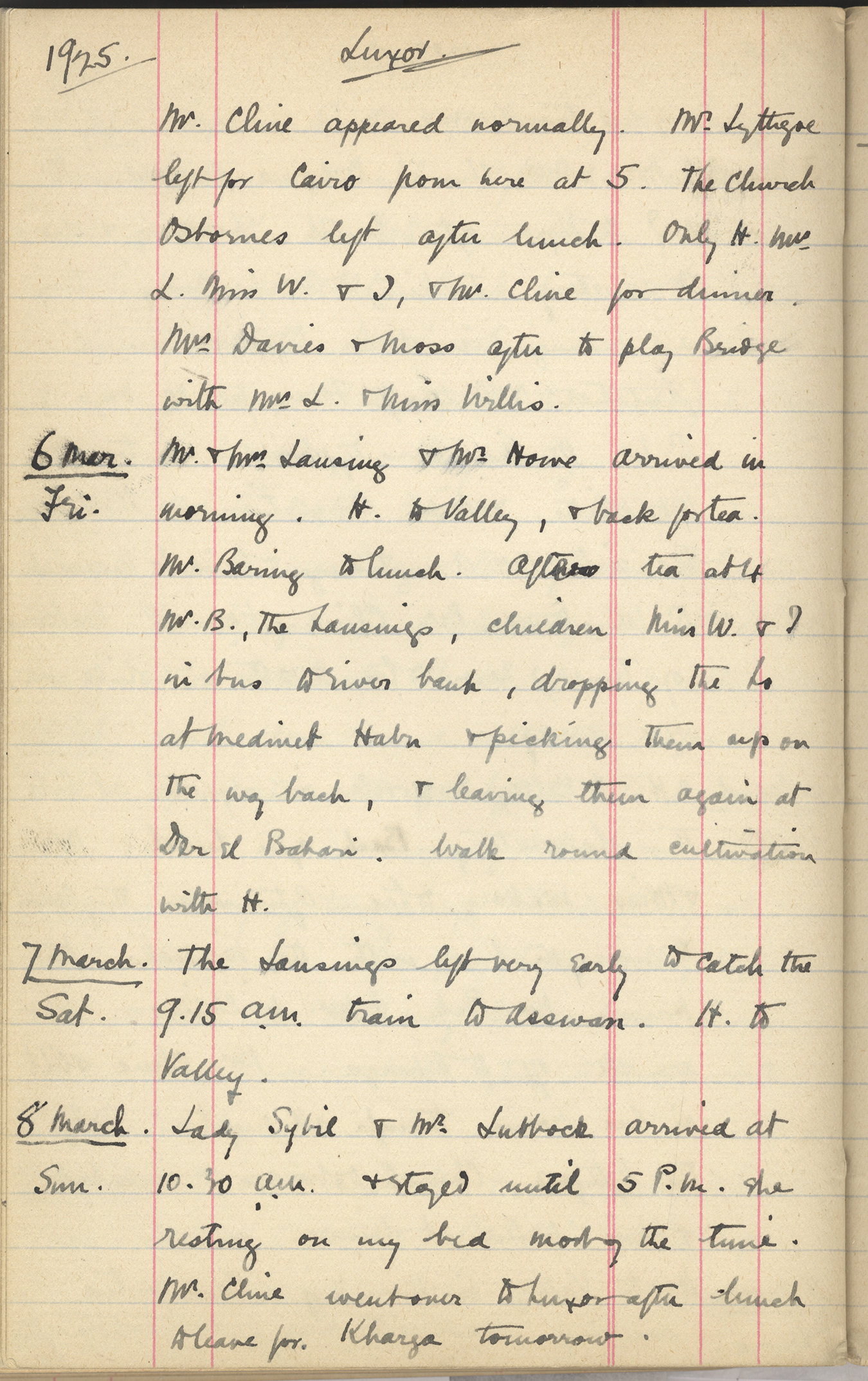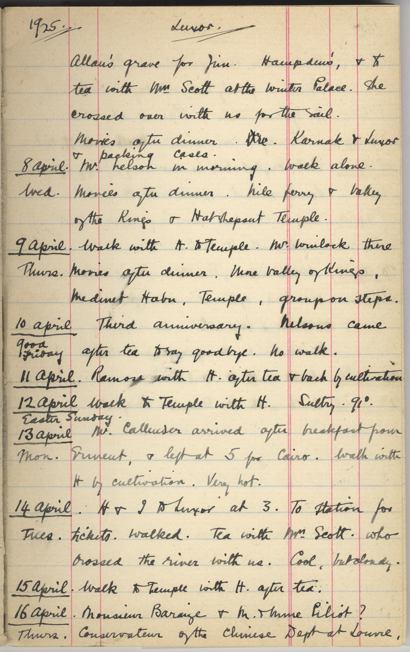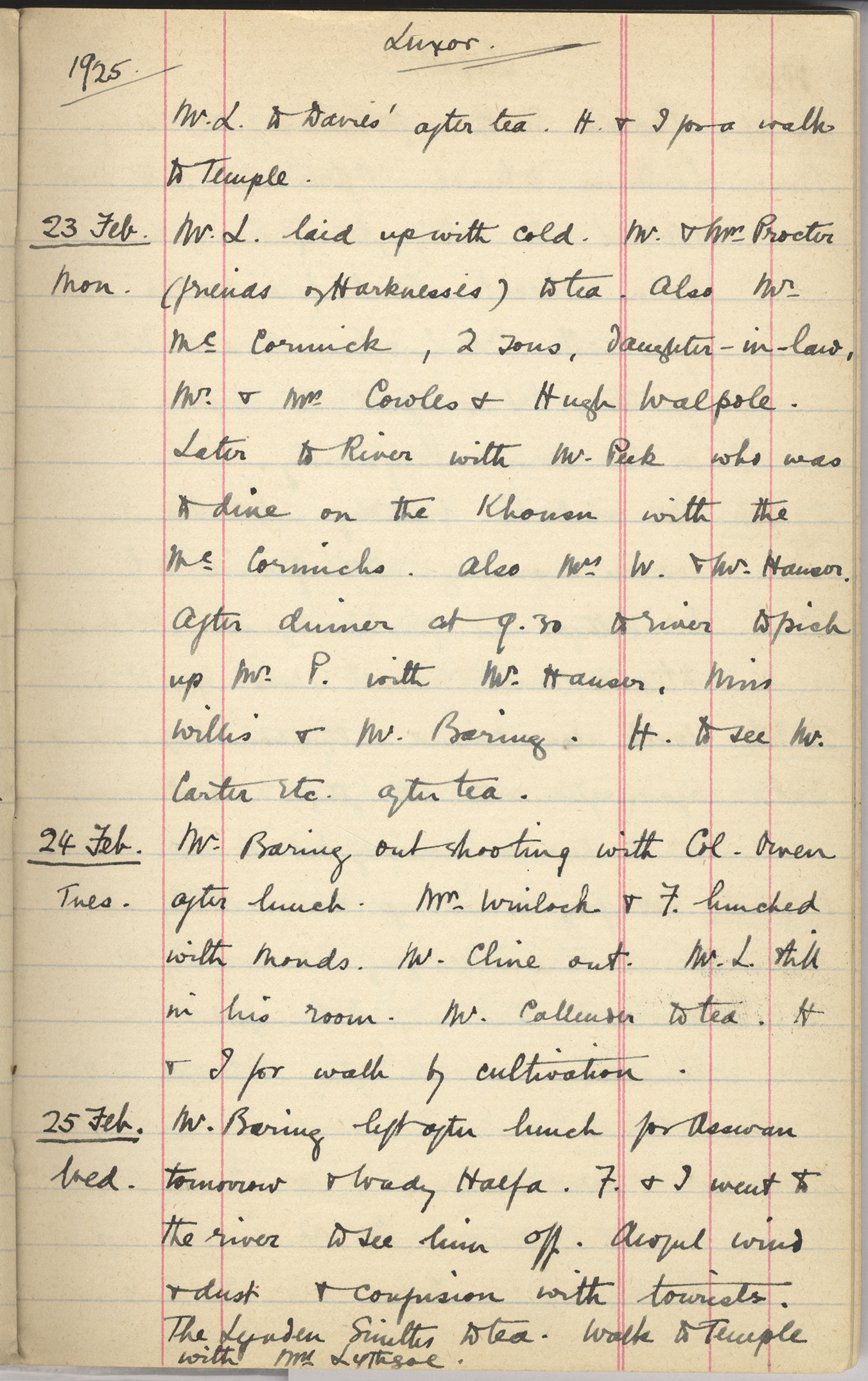 Mr & Mrs W. Miss B. to Luxor. Tea with Miss