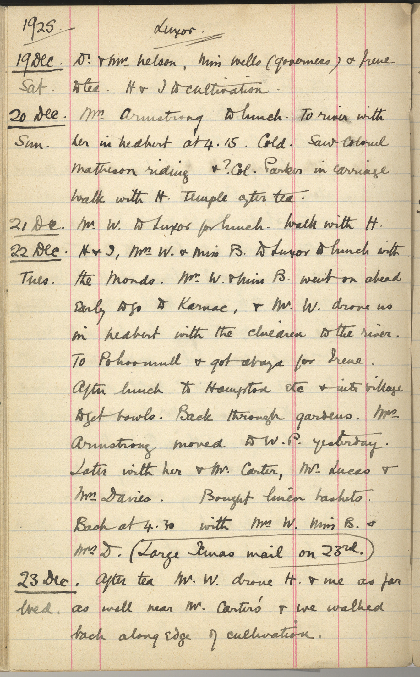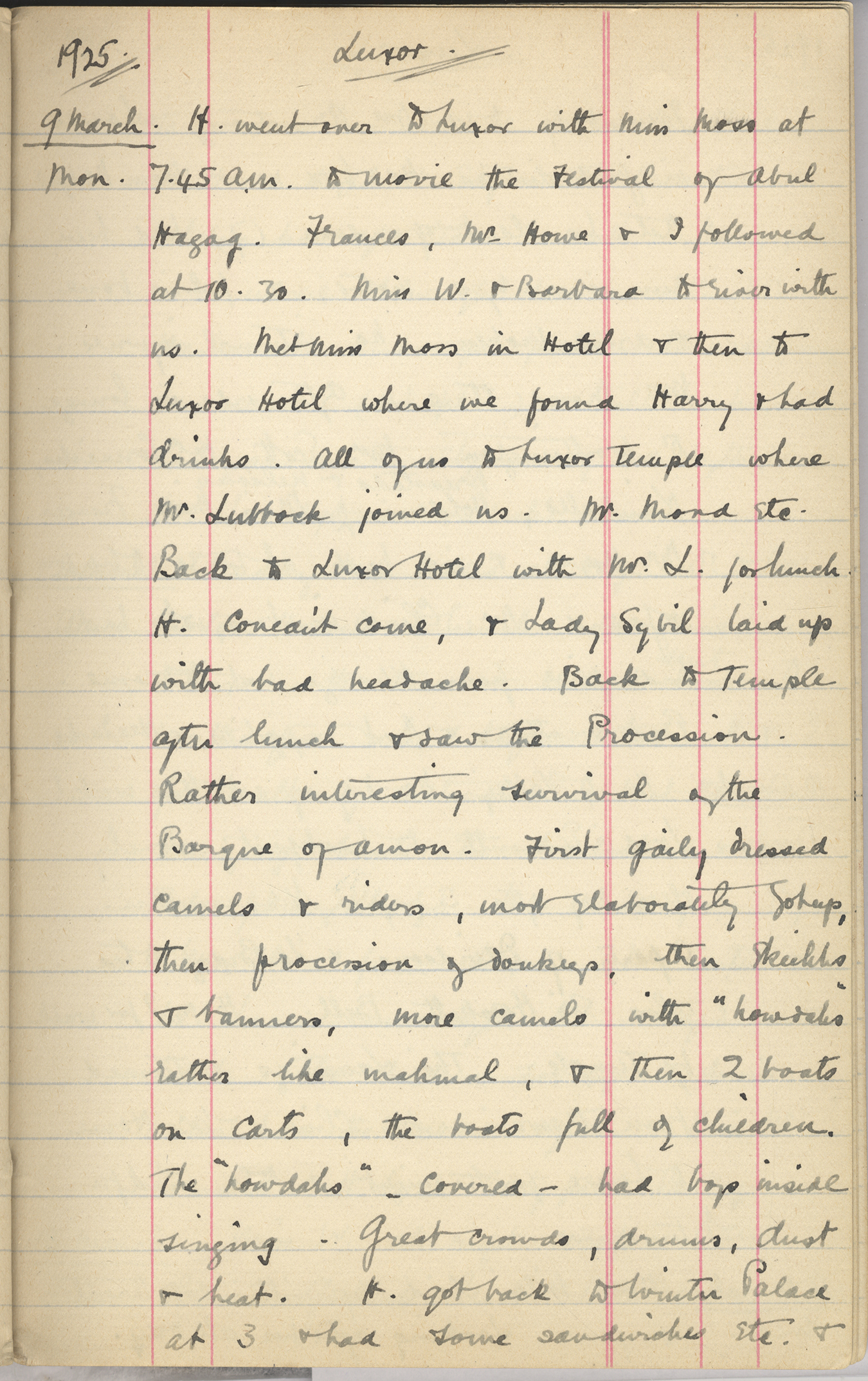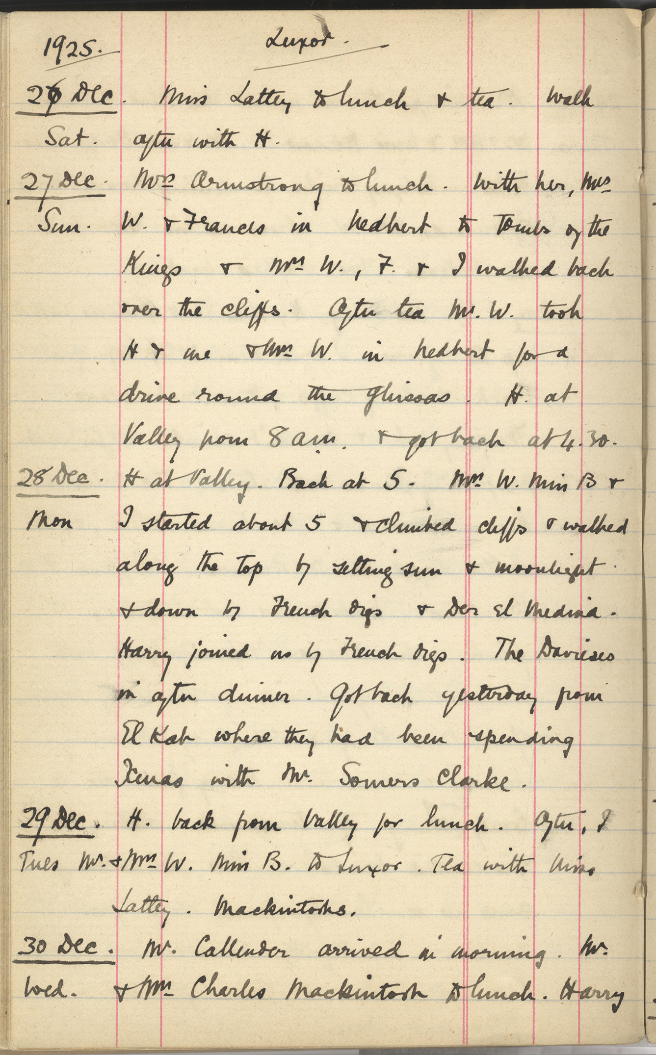 Mrs W. & I to Luxor Hotel to Mrs Armstrong