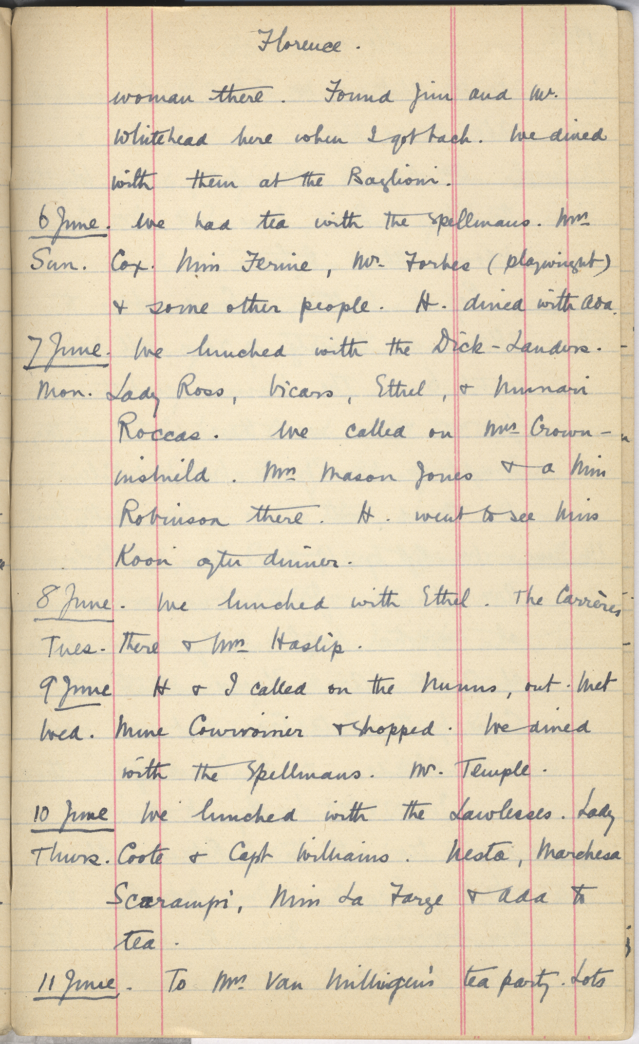 & Mrs Hayes Sadler. Cook’s. Then to Lorelle
